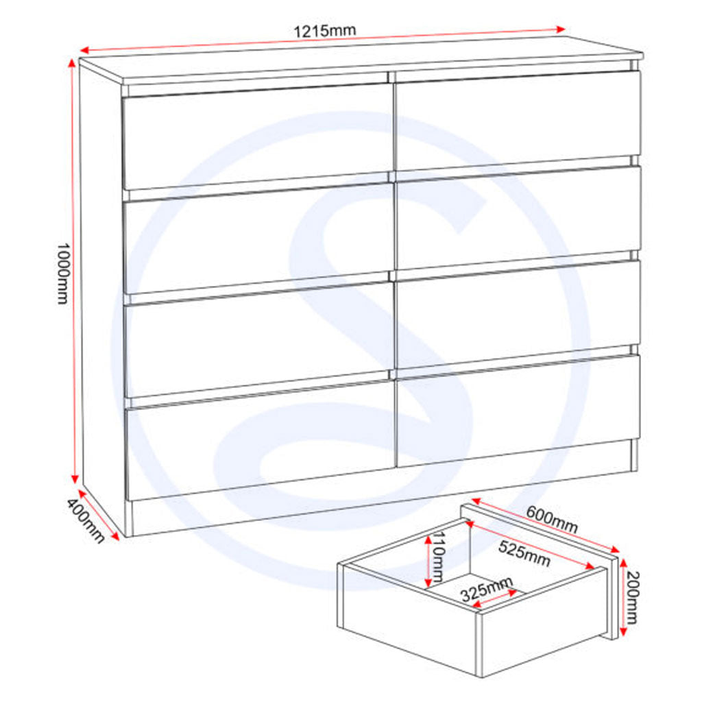 Maximise your storage while maintaining elegant style with the Malvern Wooden Chest of 8 Drawers, available exclusively at CozyFurnitureDirect. Ideal for larger bedrooms or shared spaces, this chest offers exceptional organisation with a sleek, modern finish that complements a variety of interiors. Crafted from durable composite board and finished in a refined wood-effect paper and plastic veneer, it blends strength and visual appeal effortlessly. The eight spacious drawers glide smoothly on metal runners, providing ample room for clothing, linens and everyday essentials. Supported by protective plastic feet and a sturdy 15mm top surface, this chest combines practicality with timeless design, making it a perfect choice for contemporary UK homes.
