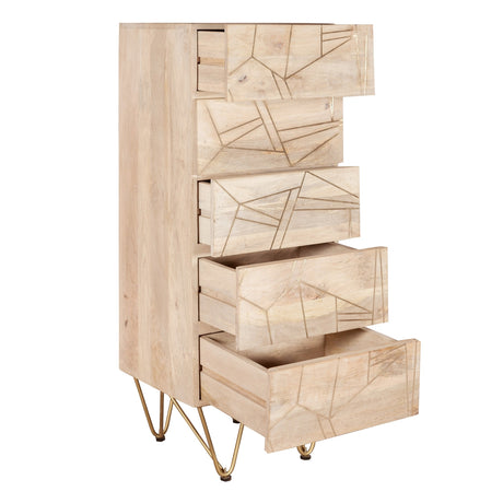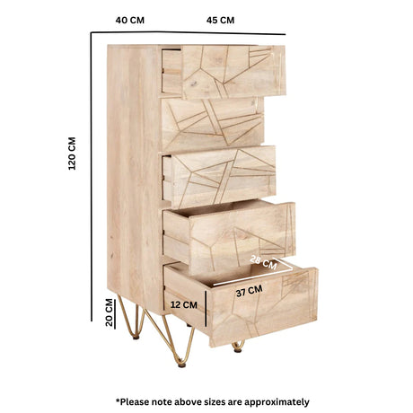 In stockRegular price £669.95Unit price /UnavailableSolid Mango Wood Chest Of 5 Drawers Tall - Light Gold