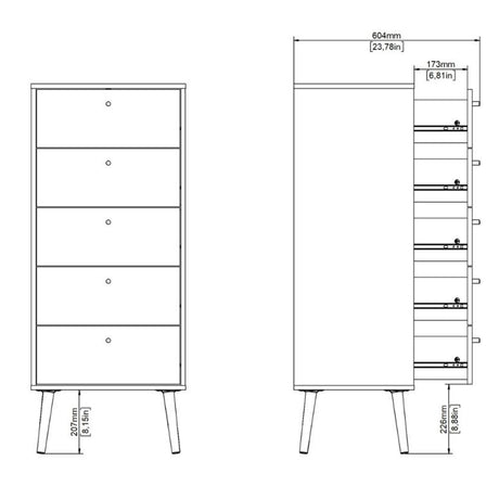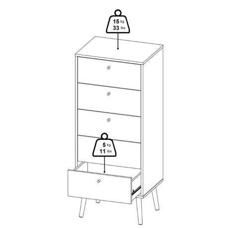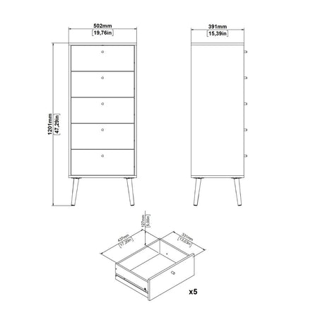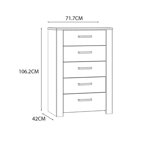 Wooden Chest Of 5 Drawers Tall - Cumbria