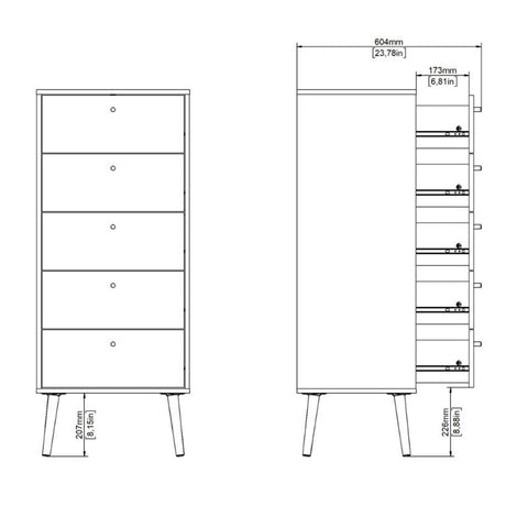 Wooden Chest Of 5 Drawers Narrow - Bohol