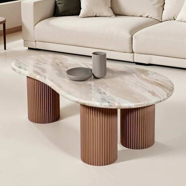 Marble Coffee Table Oval With Solid Mango Wood Pedestal - Ashford