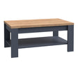 Bring refined rustic charm into your living - room with the Bohol Wooden Rectangular Coffee Table from CozyFurnitureDirect. Crafted with a warm Riviera Oak top and a sturdy Navy blue, grey or white base, this coffee table is as stylish as it is practical, making it the perfect centrepiece for your home. Its robust build ensures lasting durability, while the generously sized table top provides plenty of space for drinks, snacks, or decorative accents. The built - In lower shelf adds practical storage for magazines, books, or baskets, helping you keep your living space organised without sacrificing style. Made in Poland from quality materials, the Bohol Coffee Table offers timeless design with a modern edge, suited to both rustic and contemporary UK interiors. Easy to assemble and position, it's an ideal choice for those who value both beauty and functionality in their furniture.