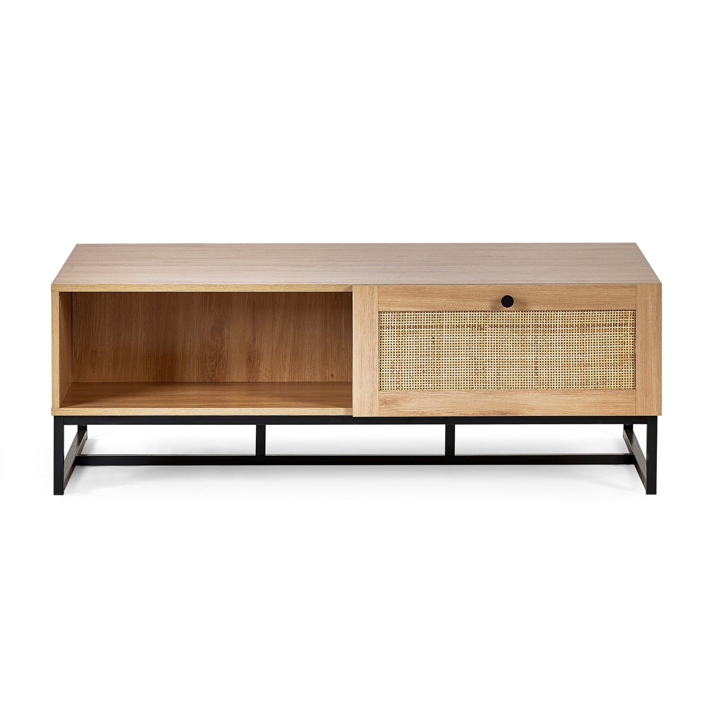 Add a touch of retro charm and contemporary elegance to your living room with the Padstow Wooden Coffee Table With 2 Drawers, available exclusively at CozyFurnitureDirect. Part of the stylish Padstow collection, this coffee table combines natural materials and modern design for a warm yet refined aesthetic. The striking natural rattan drawer fronts contrast beautifully with the smooth wooden frame and industrial-style metal base, creating a look that - s both trendy and timeless. With two spacious drawers offering practical storage for remotes, coasters or magazines, this table effortlessly blends function and style - making it the perfect centrepiece for any UK home.