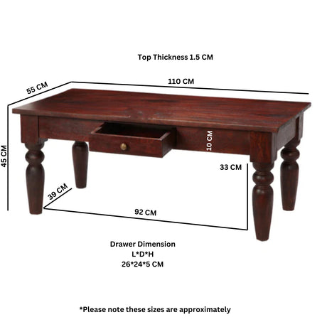 In stockRegular price £299.95Unit price /UnavailableSolid Mango Wood Coffee Table With 1 Drawer - Jaipur