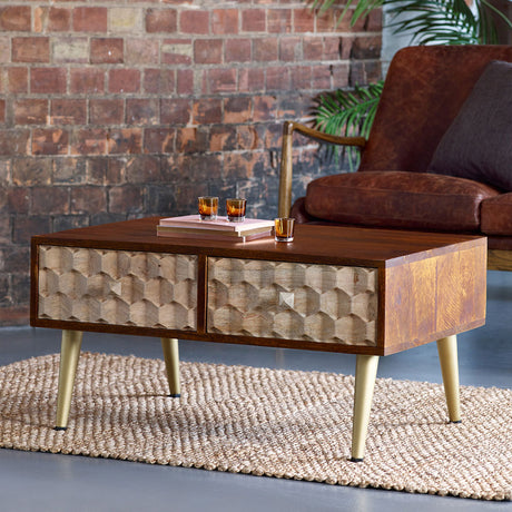 Solid Mango Wood Coffee Table With 2 Drawers - Edison
