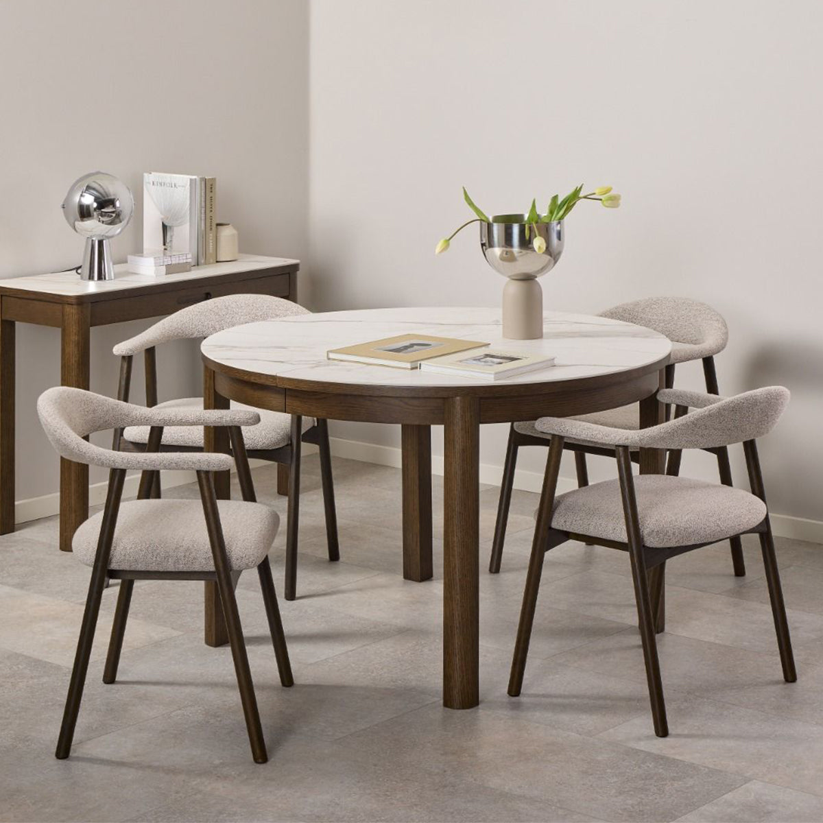 Transform your hallway or living room with the Southampton Ceramic Console Table With 1 Drawer, available exclusively at CozyFurnitureDirect. Expertly designed with a creamy polished ceramic top featuring elegant Talvera veining and a smoked oak veneer base, this rectangular console table fuses Scandinavian craftsmanship with contemporary appeal. Perfect for UK homes, it’s the ideal blend of style, practicality, and durability, offering convenient storage and a statement finish for any interior.