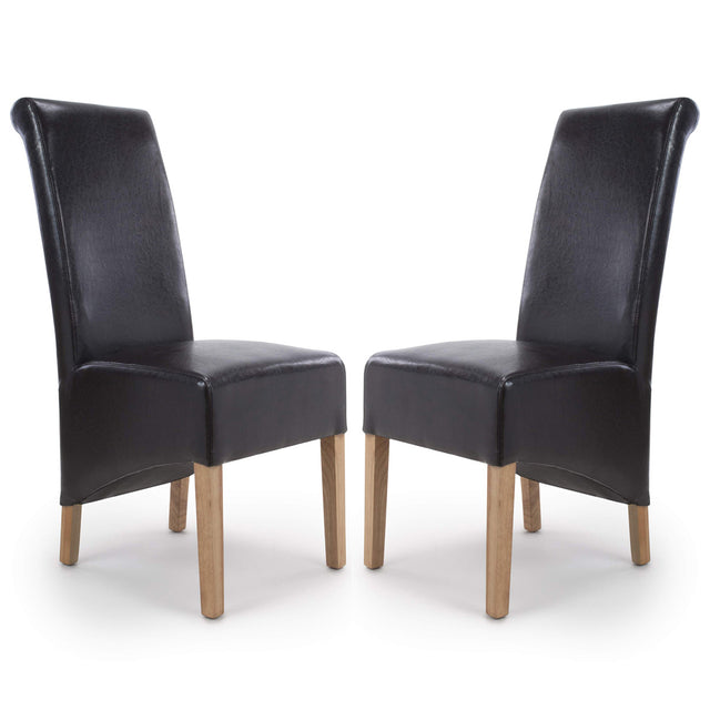 Bonded Leather Dining Chairs in Set Of 2 With Roll Back - Krista