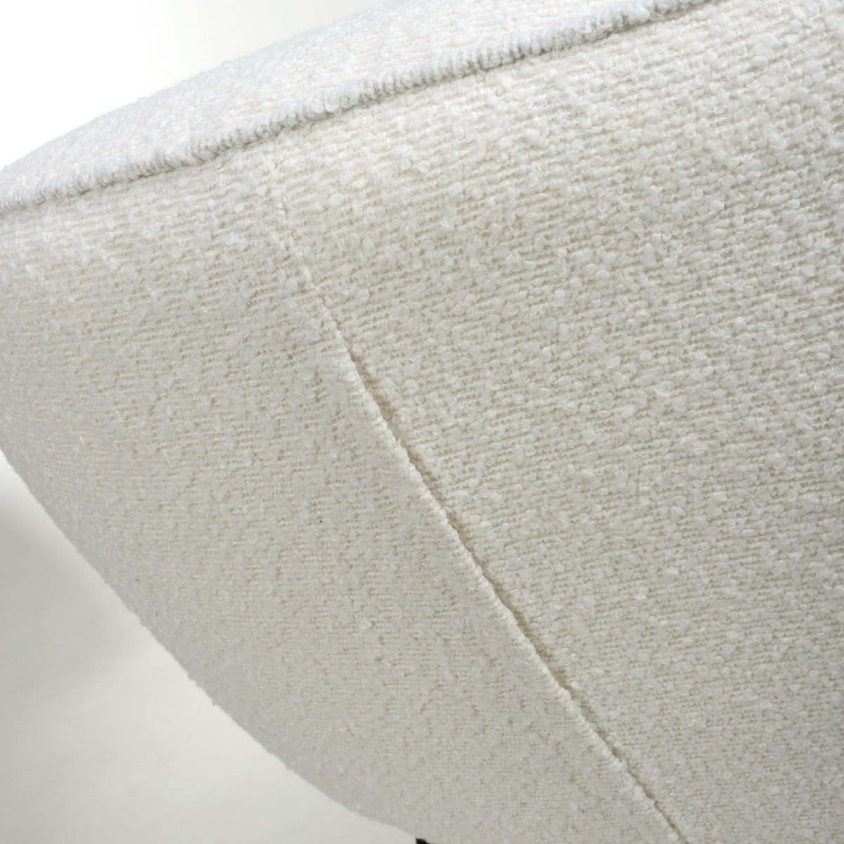 - Upholstered in luxurious grey boucle fabric for a textured and fashionable finish