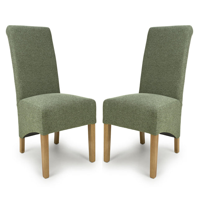 Bring timeless design and everyday comfort to your dining space with the Krista Fabric Dining Chairs from CozyFurnitureDirect. Sold in a set of two, these elegant roll back chairs are upholstered in a distinctive green hexagonal weave fabric that adds texture and character to any dining room. The sprung and belted seat construction ensures lasting support and comfort, while the natural rubber wood legs provide strength and a warm, natural finish. Delivered fully assembled for ease and convenience, the Krista chairs are a stylish and practical choice for UK homes.