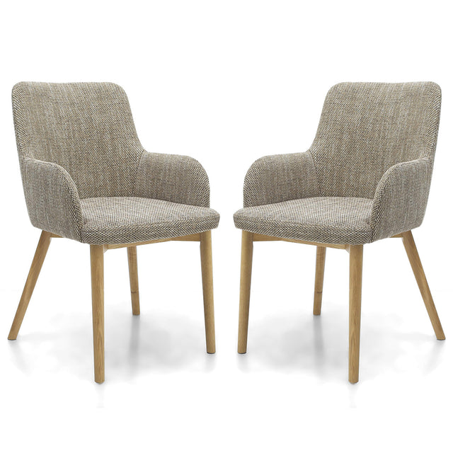 - Set of 2 dining chairs upholstered in fashionable oatmeal tweed for a soft textured finish