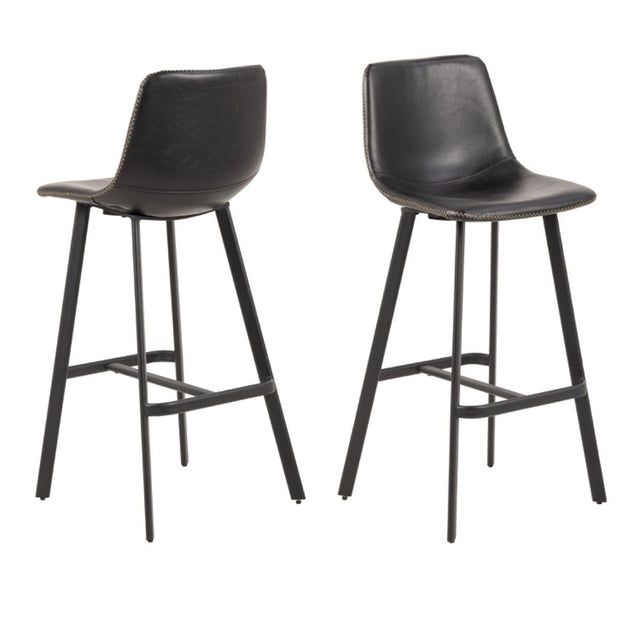 • Set of 2 faux leather bar chairs, upholstered in vintage Black or Brown for a timeless yet modern look.