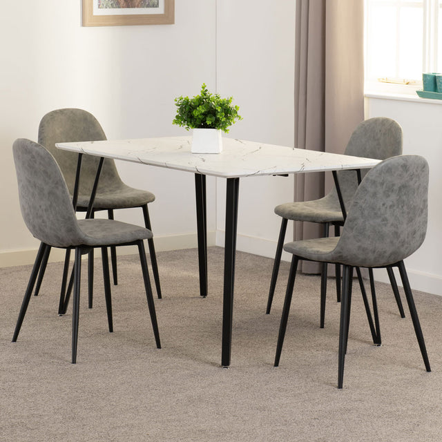 Wooden Dining Table White With 4 Athens Dining Chairs - Marlow