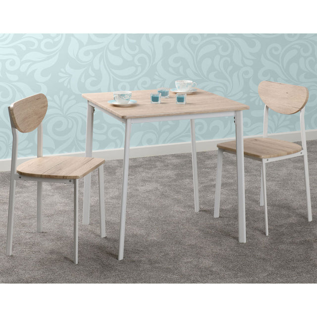 Create an intimate dining setting with the Wooden Dining Table with 2 Dining Chairs - Riley, available at CozyFurnitureDirect. This compact three-piece dining set features a square MDF table top with sturdy metal-reinforced legs, paired with two comfortable cushioned chairs. The modern Riley design brings contemporary elegance to smaller kitchens and dining spaces, whilst maintaining excellent build quality and durability. Perfect for couples, small families, or those seeking a space-saving solution, this practical set transforms any UK dining area into a stylish and welcoming gathering space.
