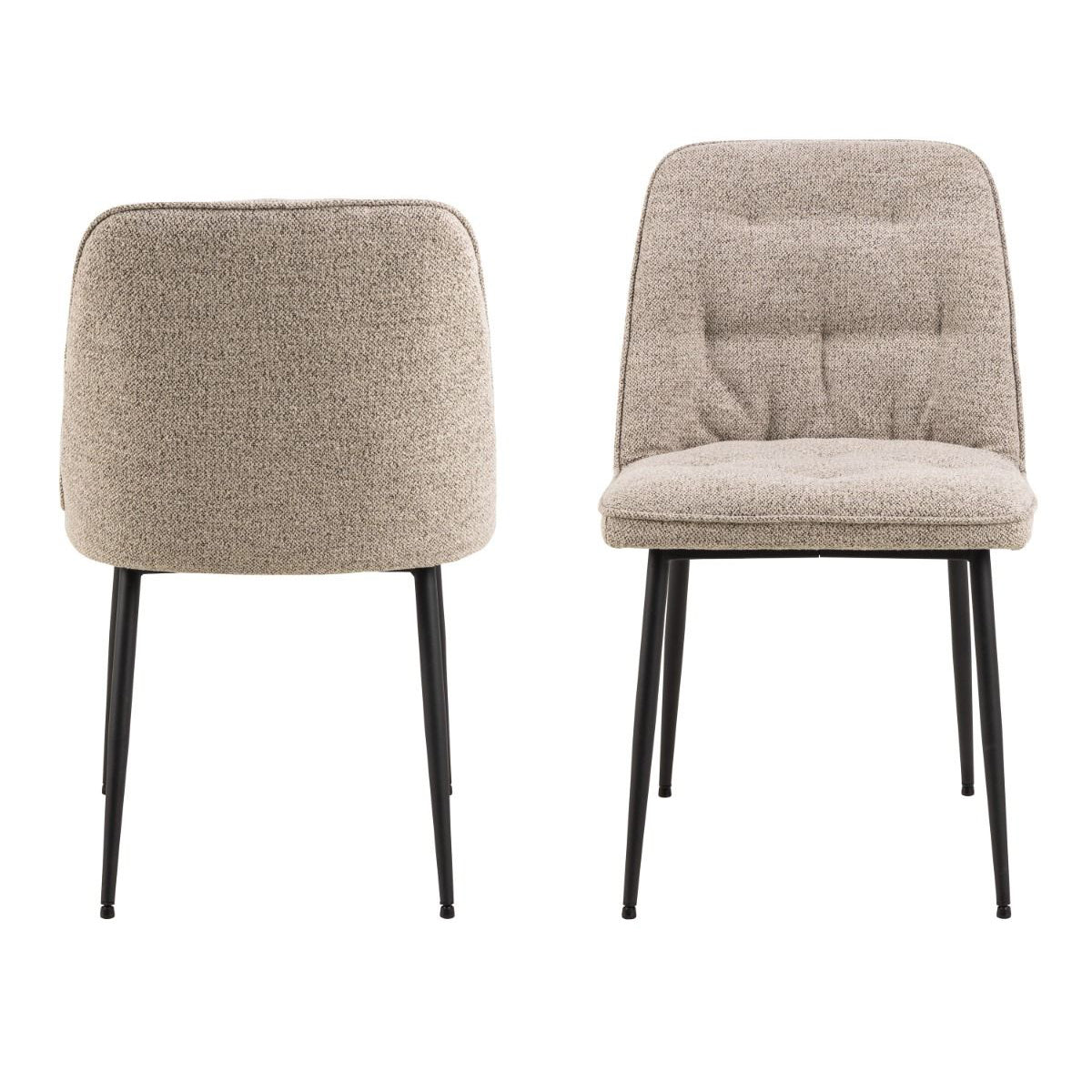 - Includes four Brooke dining chairs with soft beige boucle-style upholstery