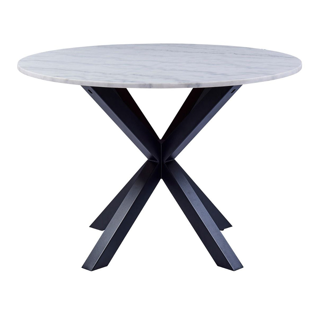 Polished Marble Dining Table Round With 4 Oregon Black Dining Chairs - Heaven