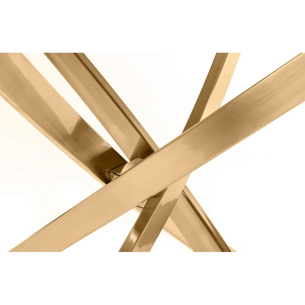 - Intertwined gold metal legs create a unique, sculptural design