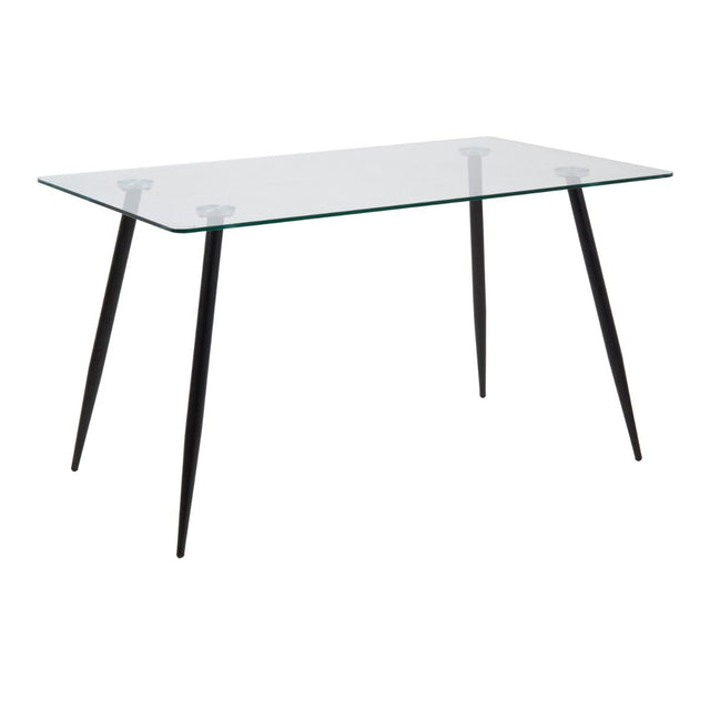 Elevate your dining experience with the Glass Dining Table for 4 to 6 People Rectangular - Wilma, available now at CozyFurnitureDirect. Combining sleek design with practical durability, this elegant table features a clear tempered glass top that enhances any space with a sense of light and openness. The matte black powder-coated steel base adds contemporary flair and strong structural support, making it an ideal centrepiece for modern UK homes. Its slim, angled legs provide both stability and a touch of minimalist sophistication, ensuring this table is as functional as it is stylish. Perfect for casual family meals or dinner gatherings, the Wilma table harmonises design and practicality with effortless grace.