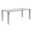 - Elegant rectangular dining table with a clear tempered glass top, offering strength, safety, and a light, airy aesthetic.