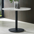 Bring modern elegance to your dining space with the Luca Round Wooden Dining Table, 80cm wide for 4 people, available at CozyFurnitureDirect. Boasting a stunning marble effect top paired with a bold black pedestal base, this table is a true statement piece that blends style with functionality. Its compact size makes it perfect for UK homes, fitting seamlessly into smaller dining rooms or kitchen spaces while still providing ample seating for family meals or entertaining guests. Crafted for durability and easy maintenance, the Luca table adds a touch of sophistication to any contemporary interior.