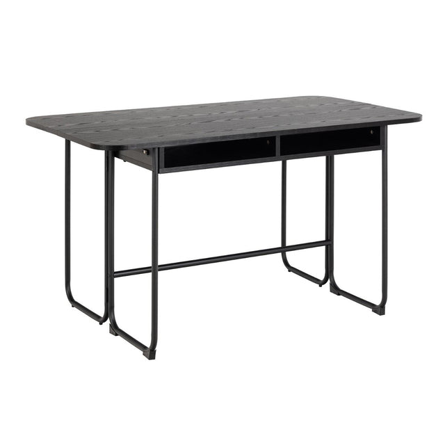 Optimise your dining space with the Wooden Dining Table for 2 to 4 People Rectangular Extending - Darlington, available at CozyFurnitureDirect. This versatile contemporary table features a sleek black ash-look surface and matte black steel base, with a hidden extension leaf that effortlessly expands from intimate setups for two to gatherings of four. Blending Danish minimalism and practicality, it's ideal for compact UK flats or home offices needing flexible functionality.