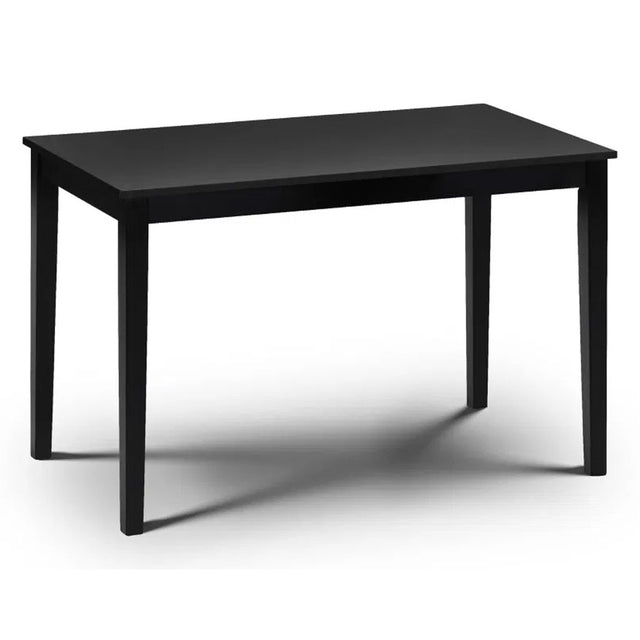Enhance your dining or work area with the Hudson Wooden Dining Table for 4 People, available exclusively at CozyFurnitureDirect. Designed for modern living, this sleek and practical table combines functionality with minimalist style. Crafted from durable lacquered particleboard and rubber wood, it provides a robust and long-lasting surface suitable for dining, studying, or working. Finished in a bold black tone, the Hudson table complements a wide range of interior styles, making it a versatile choice for UK homes. Its compact yet spacious design makes it ideal for kitchens, apartments, or open-plan spaces, offering functionality without sacrificing elegance.