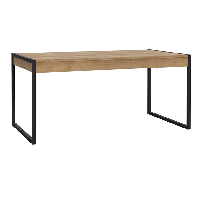 Create the perfect dining space with the Wooden Dining Table for 4 to 6 People with 2 Drawers Rectangular - Duncan, available at CozyFurnitureDirect. Designed for both everyday meals and special gatherings, this stylish table features a stunning Riviera Oak finish paired with bold black accents, giving it a contemporary industrial edge that suits modern UK homes. Crafted with practicality at its core, the Duncan dining table includes two discreetly hidden drawers at each end, perfect for storing placemats, cutlery, or dining accessories. This clever feature ensures your dining area remains tidy while keeping essentials within easy reach. Robust metal frame-style legs add durability and stability while enhancing the tables loft-inspired design. Seating 4 to 6 people comfortably, this table is ideal for both intimate family dinners and social occasions. Built from quality materials, its designed to endure daily use while maintaining its sophisticated charm, making it a versatile centrepiece for your dining room.