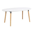 - Elegant oval dining table in a fresh white and warm oak two-tone finish