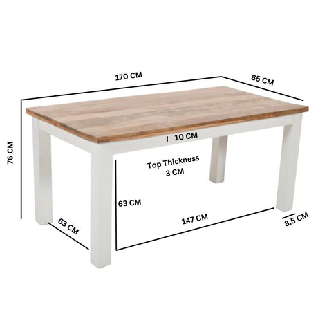 Solid Mango Wood Dining Table for 4 to 6 People Rectangular - Birmingham