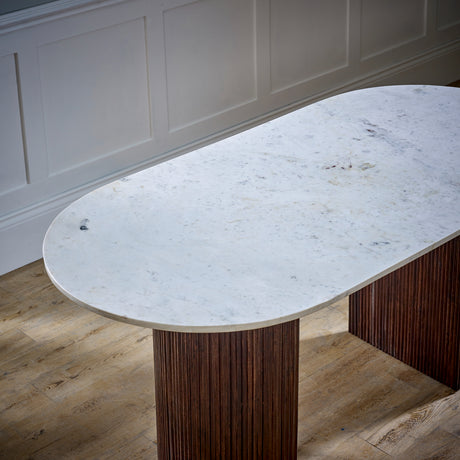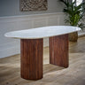 Marble Dining Table for 4 to 6 People Oval With Solid Mango Wood Pedestal - Ashford