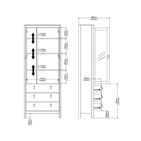 In stockRegular price £339.95Unit price /UnavailableWooden Display Cabinet With 2 Glass Doors And 3 Drawers - Madrid
