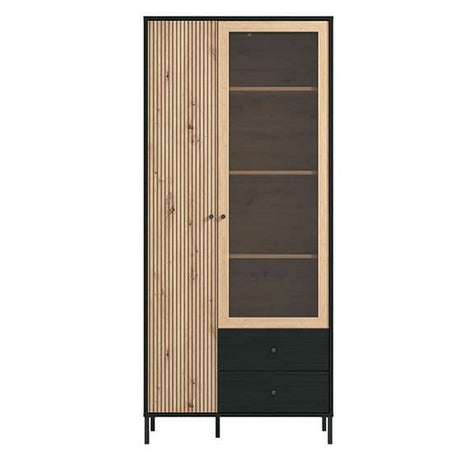 Wooden Display Cabinet With 1 Door And 2 Drawers - Clinton