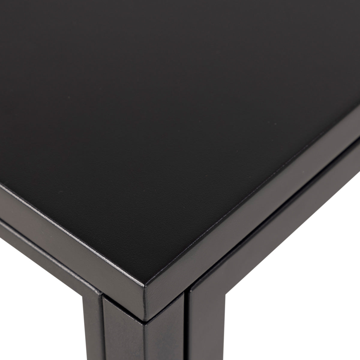 - Industrial-inspired low display cabinet crafted from durable matte black powder-coated steel