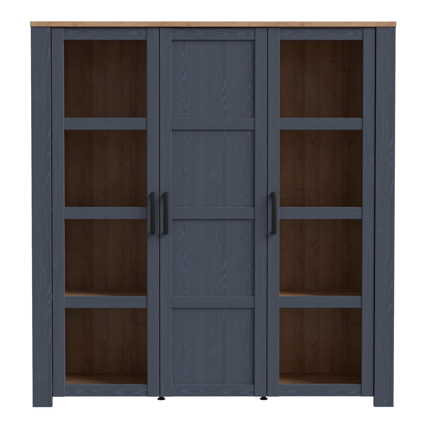 Elevate your living space with the Bohol Large Wooden Display Cabinet from CozyFurnitureDirect, a perfect fusion of rustic warmth and bold contemporary style. Featuring a rich Riviera Oak top paired with a deep Navy blue, grey or white oak-effect base, this striking piece offers a versatile mix of display and concealed storage, making it the ideal addition to UK homes seeking both beauty and functionality. The impressive three-door design includes two glazed doors for showcasing your treasured items, books, or glassware, and one solid door for storing everyday essentials neatly out of sight. Optional LED lighting (sold separately) adds a soft, inviting glow to your display, enhancing the cabinet's ambience and presence in your room. Soft-close functionality ensures smooth and quiet operation, while the sturdy frame and quality craftsmanship promise lasting durability. At over 1.5 metres wide, this spacious cabinet is equally at home in living - rooms, dining areas, or open - plan spaces, providing elegance and utility in one timeless design.
