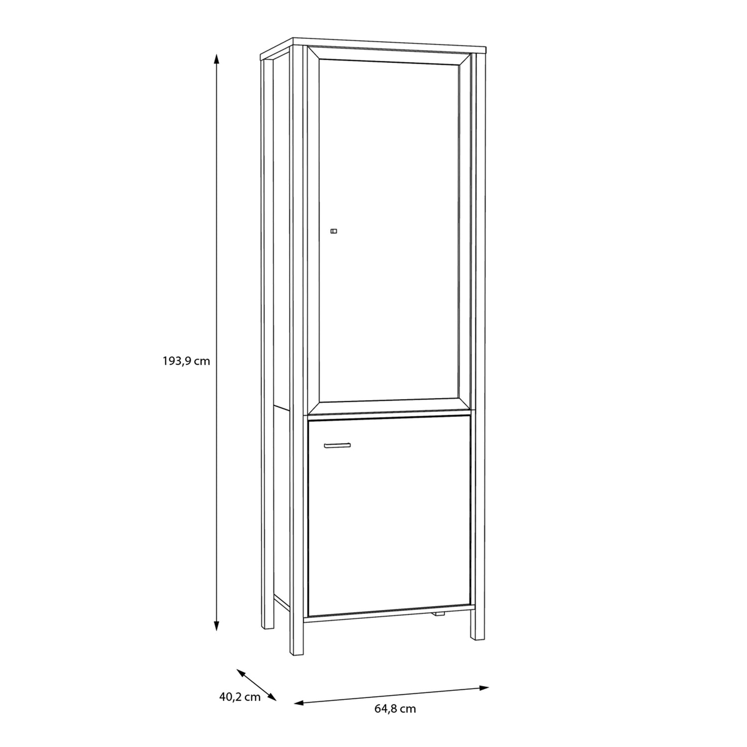 Elevate your home with the Wooden Tall Display Cabinet with 2 Doors - High Rock, available at CozyFurnitureDirect. A statement piece from the High Rock collection, this stunning cabinet blends the warmth of Riviera Oak decor with bold black accents, delivering a captivating industrial style with a modern edge. The design features a glass door for showcasing your favourite items and an oak door for discreet storage, striking the ideal balance between display and practicality. Inside, four shelves provide generous room for glassware, books, dinnerware, or decorative pieces, while optional LED lighting (purchased separately) enhances ambience by illuminating your display. Finished with sleek black metal handles and supported by sturdy metal legs, the High Rock tall display cabinet offers excellent stability and long - lasting durability. At nearly two metres high, it makes a commanding presence in dining rooms, living spaces, or open - plan areas, bringing sophistication and storage together in one exceptional piece.