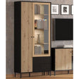 Bring sophistication and practical storage to your home with the Wooden Display Cabinet With 2 Doors And 2 Drawers - Clinton, available at CozyFurnitureDirect. This tall cabinet beautifully combines a modern black finish with an artisan oak effect, adding depth and style to any room. Featuring two doors, two drawers, and eight internal shelves, it provides generous space to organise and showcase your favourite items. The stylish slatted design offers a contemporary aesthetic while maximising storage capacity, making it perfect for creating a tidy and elegant living space in British homes.