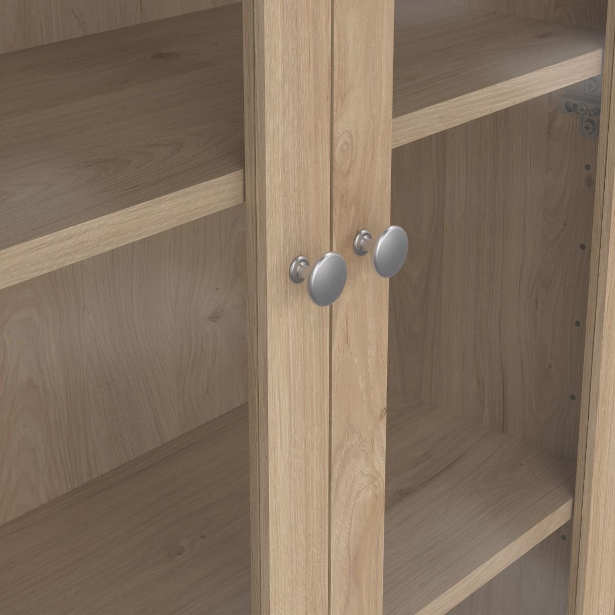 - Two glass doors ideal for displaying dinnerware, glassware, and cherished decor