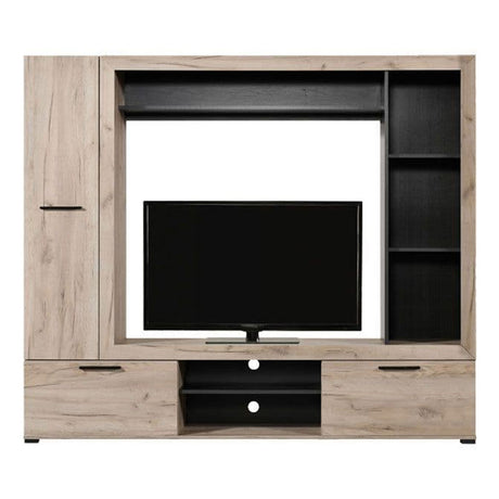 Wooden Entertainment Unit With Wall Shelf And Cabinet - Warring