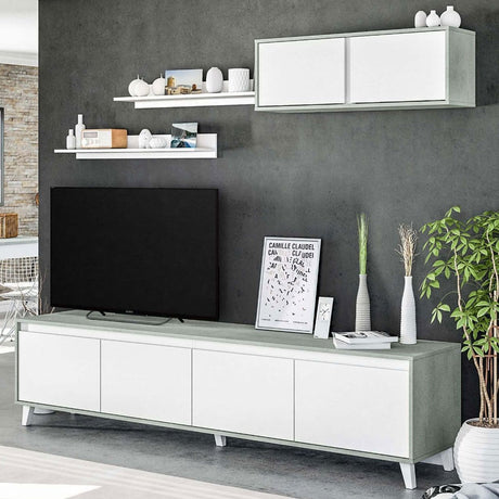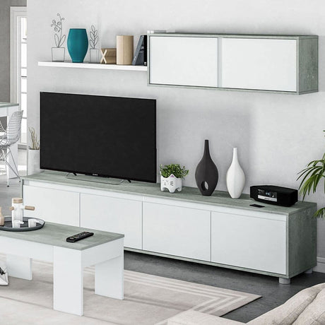 Wooden Entertainment Unit With Wall Shelf And Cupboard - Simpsonville