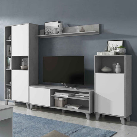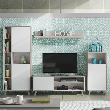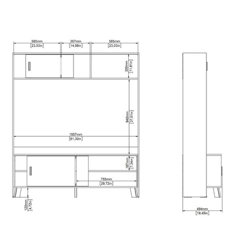 Wooden Entertainment Unit With Wall Shelf And Cupboard - Simcoe