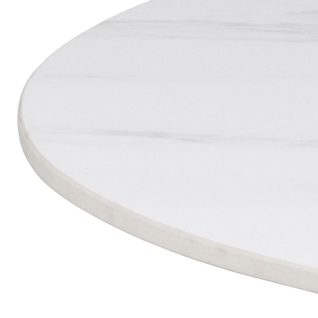- Premium ceramic table top in elegant white with subtle contrasting streaks, offering a sophisticated marble-inspired look