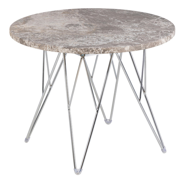Marble Side Table Round With Chromed Steel Wire Base - Prunus