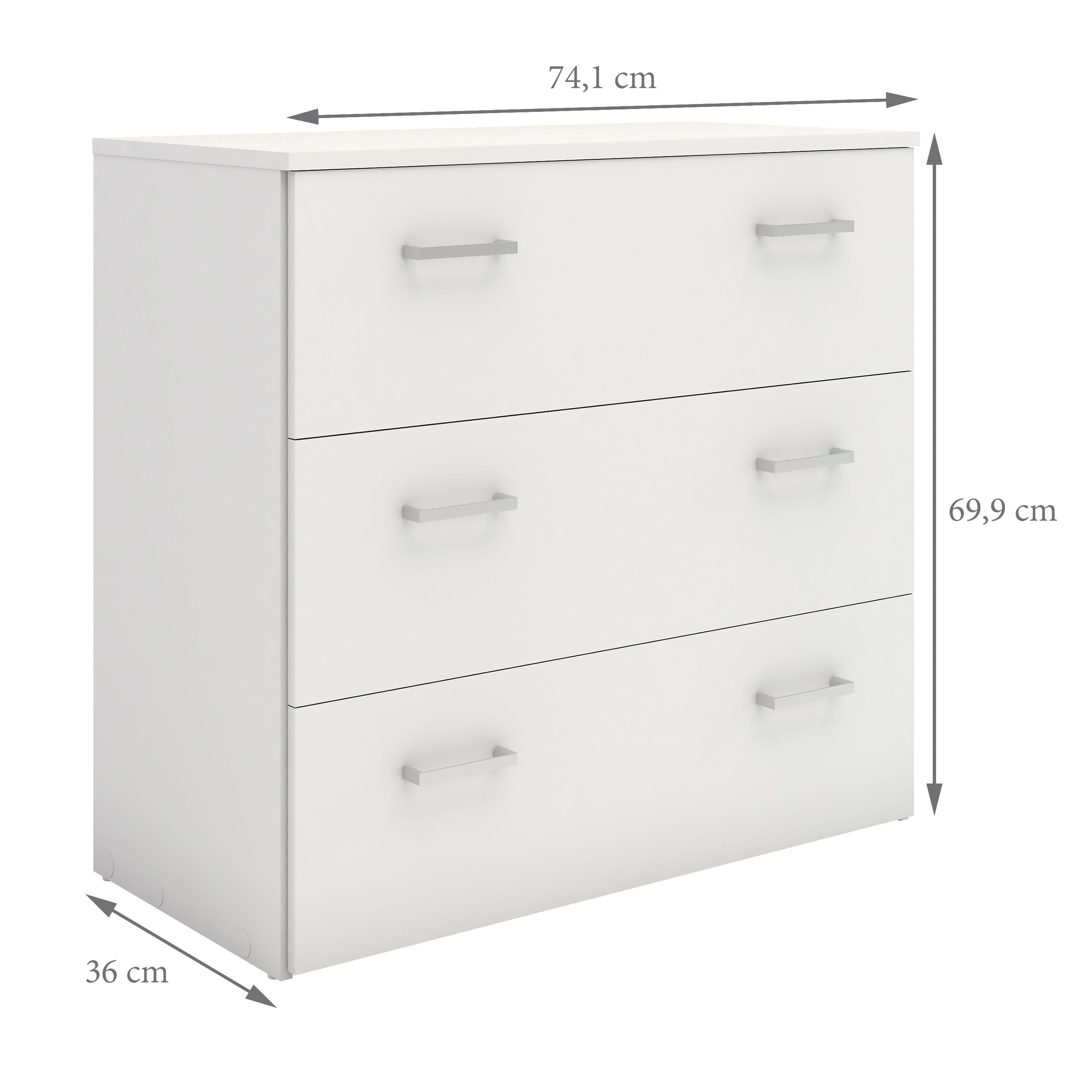 The Space Wooden Chest of 3 Drawers, available at CozyFurnitureDirect, is a practical and stylish storage solution designed for modern UK bedrooms. This chest from the Space collection maximises storage capacity while maintaining a minimal footprint, crafted from high-quality laminated board resistant to scratches, moisture, and heat. Made from PEFC certified sustainable wood in Denmark, it features easy self-assembly and includes anti-tip safety with wall fittings to ensure secure use.