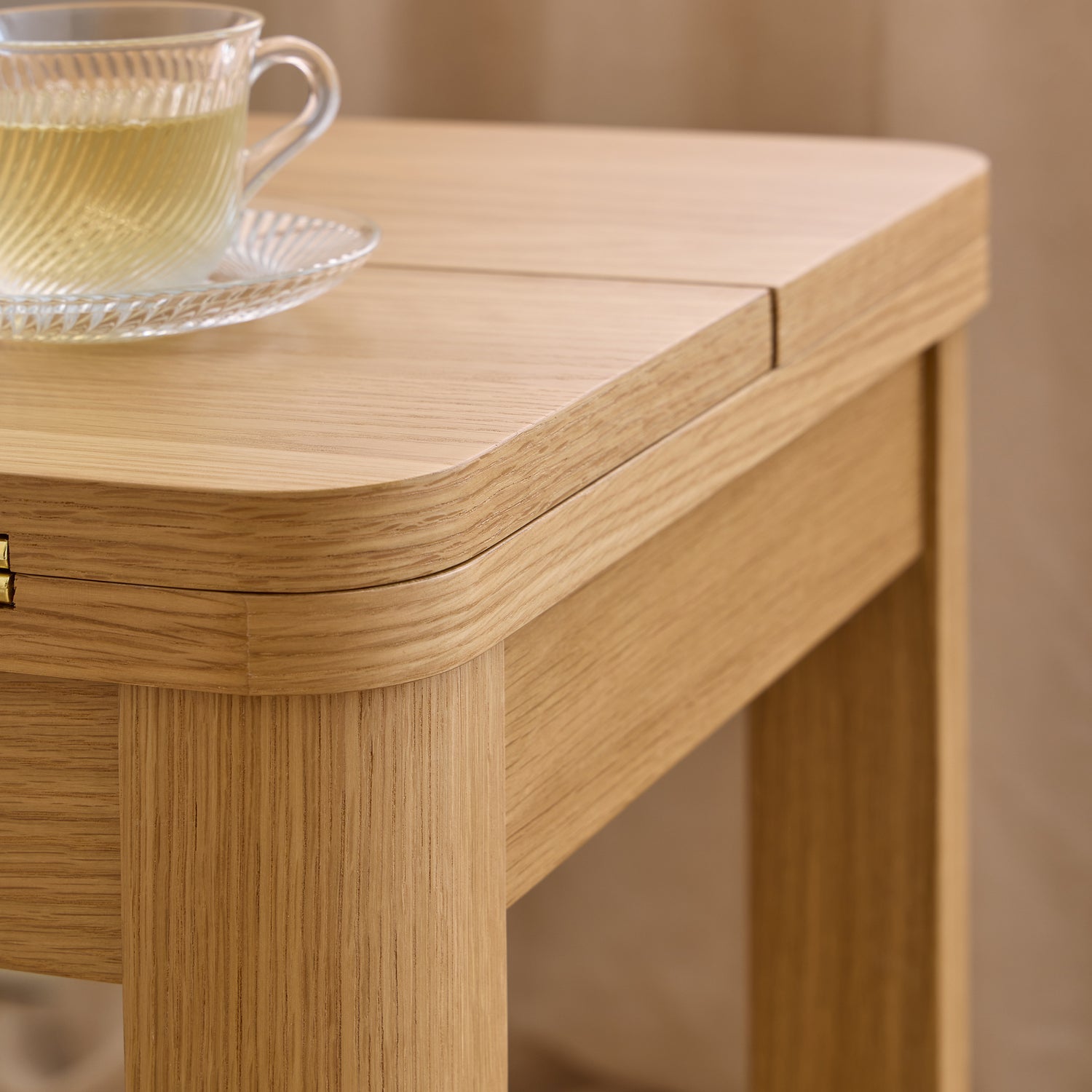 - Warm matt oak PU lacquered veneer top with matching NC lacquered base for a natural, stylish appearance