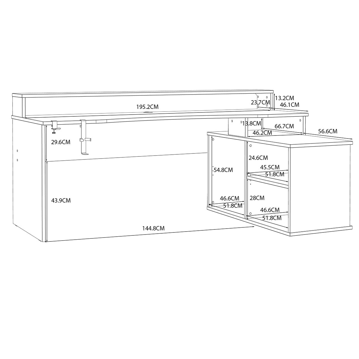 - Large L-shaped design (W 200 x H 91.1 x D 125.4 cm) maximises space for multi-monitor setups