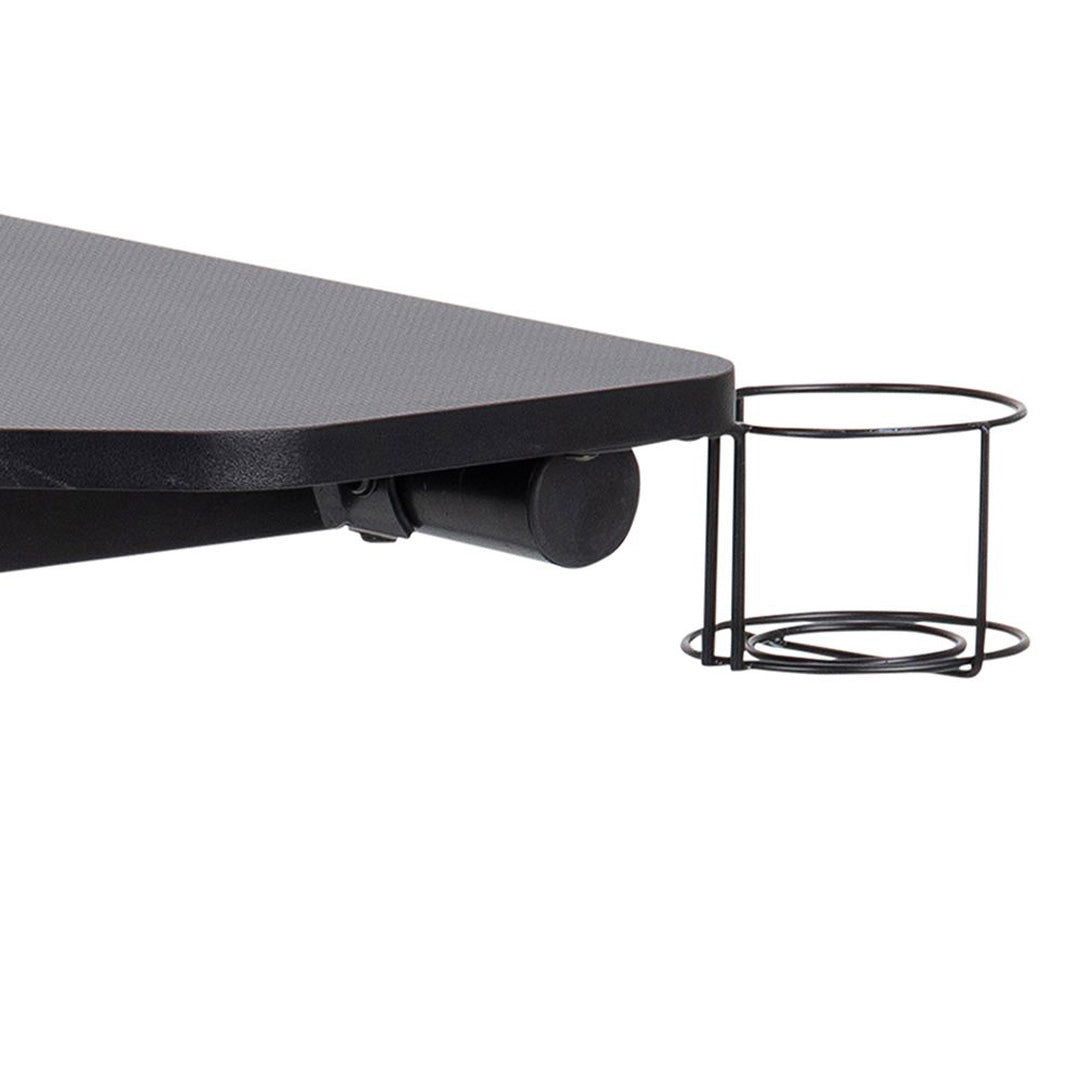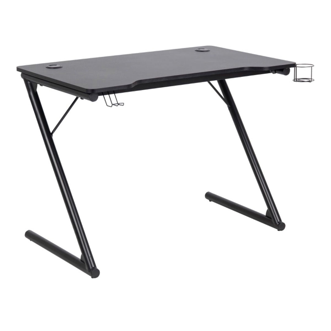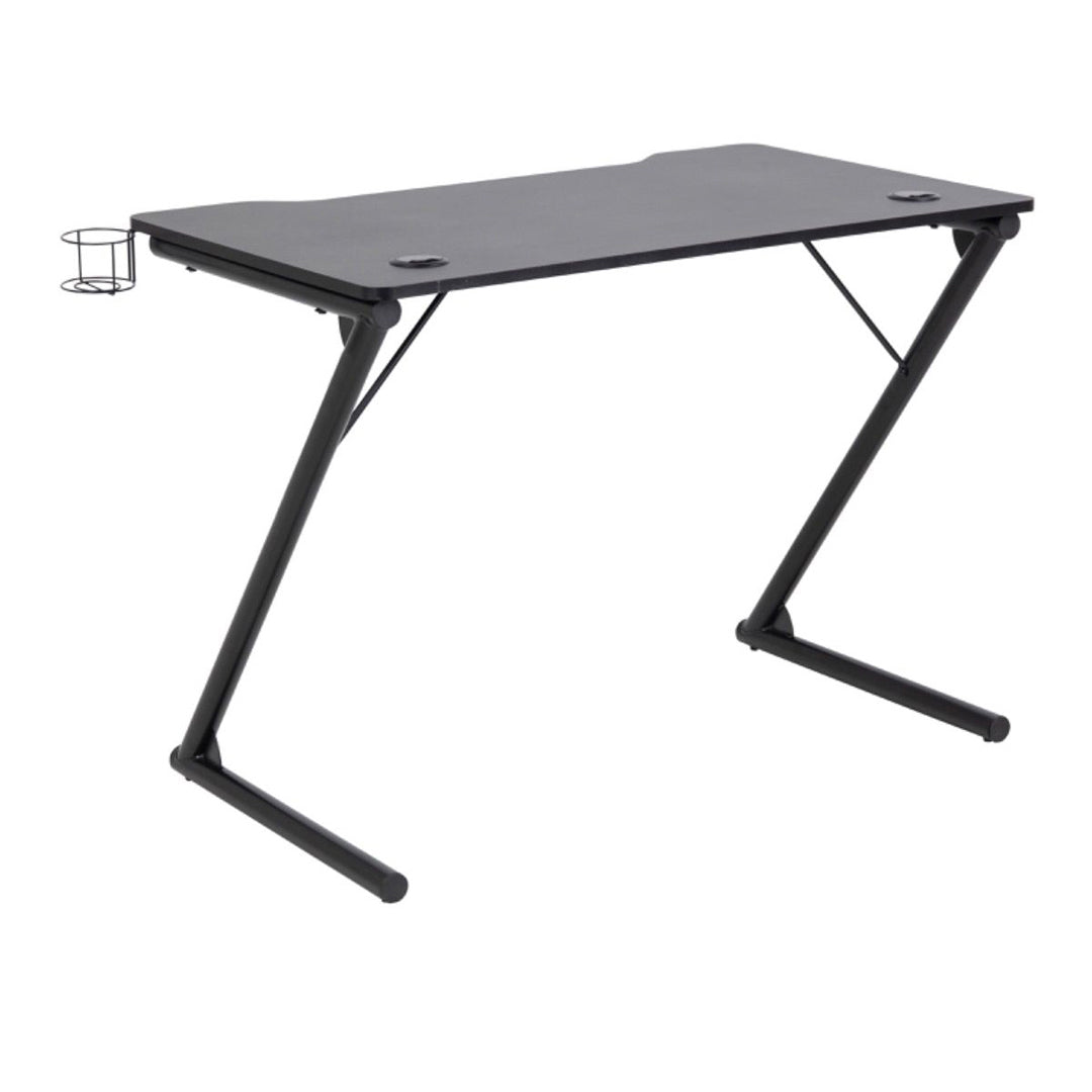 Gear up for victory with the Wooden Gaming Desk - Trooper from CozyFurnitureDirect, engineered for serious UK gamers seeking style and efficiency. This compact carbon-look melamine desk with Z-shaped black steel legs features built-in cable management, headset hook, and cup holder, perfect for immersive sessions in bedrooms, home offices, or dedicated gaming setups. Its sleek all-black finish elevates modern gaming dens without dominating space. The Trooper desk combines durability with smart organisation, keeping peripherals tidy and accessible during marathon plays. Ideal for compact UK living where performance meets bold aesthetics.
