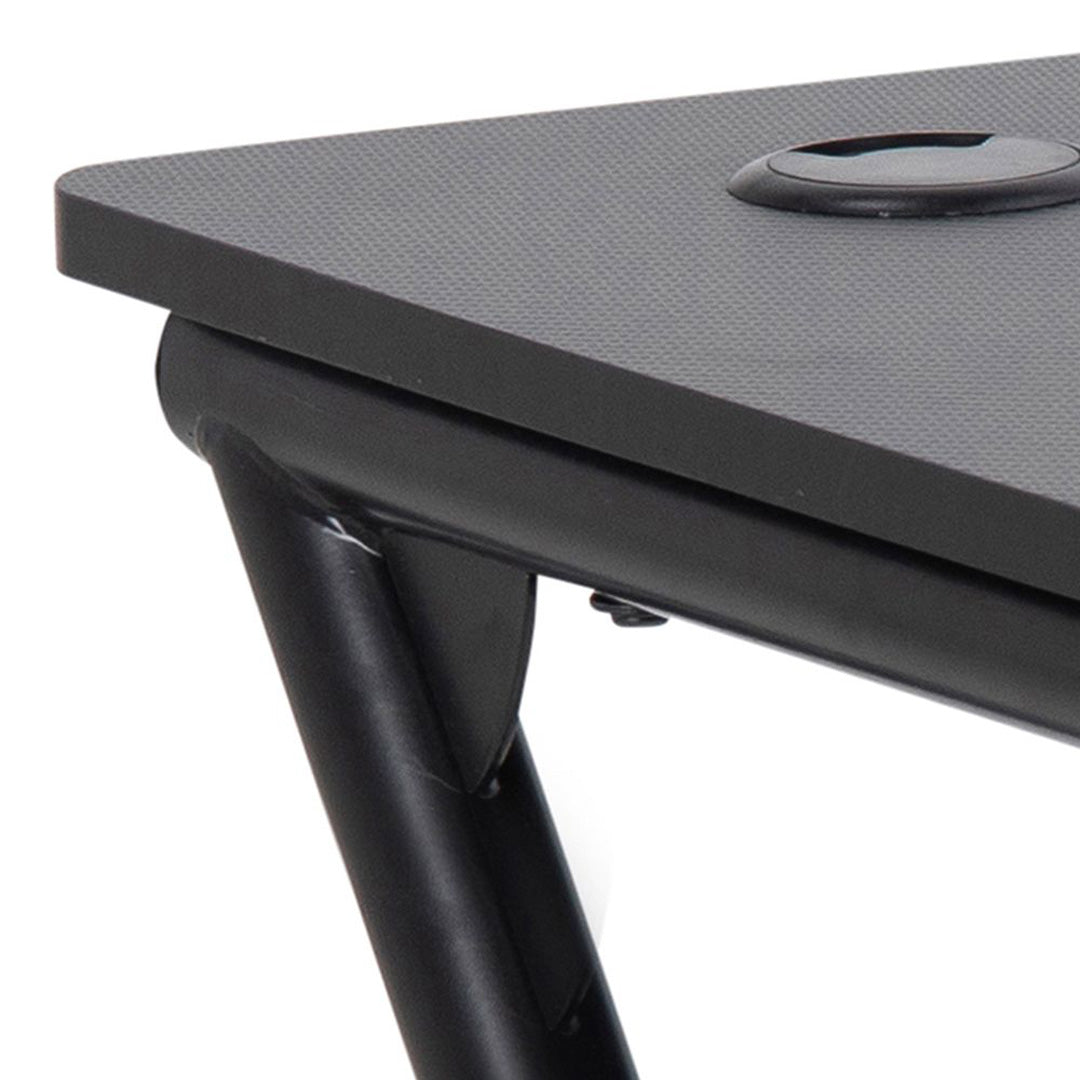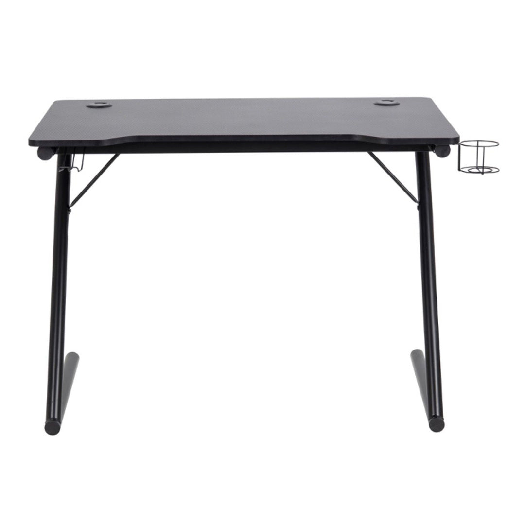 - Sleek gaming desk with durable carbon-look melamine top for stylish scratch-resistant performance