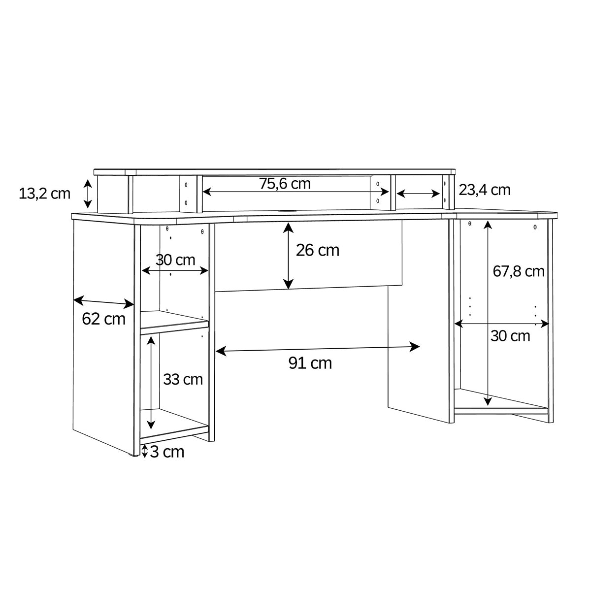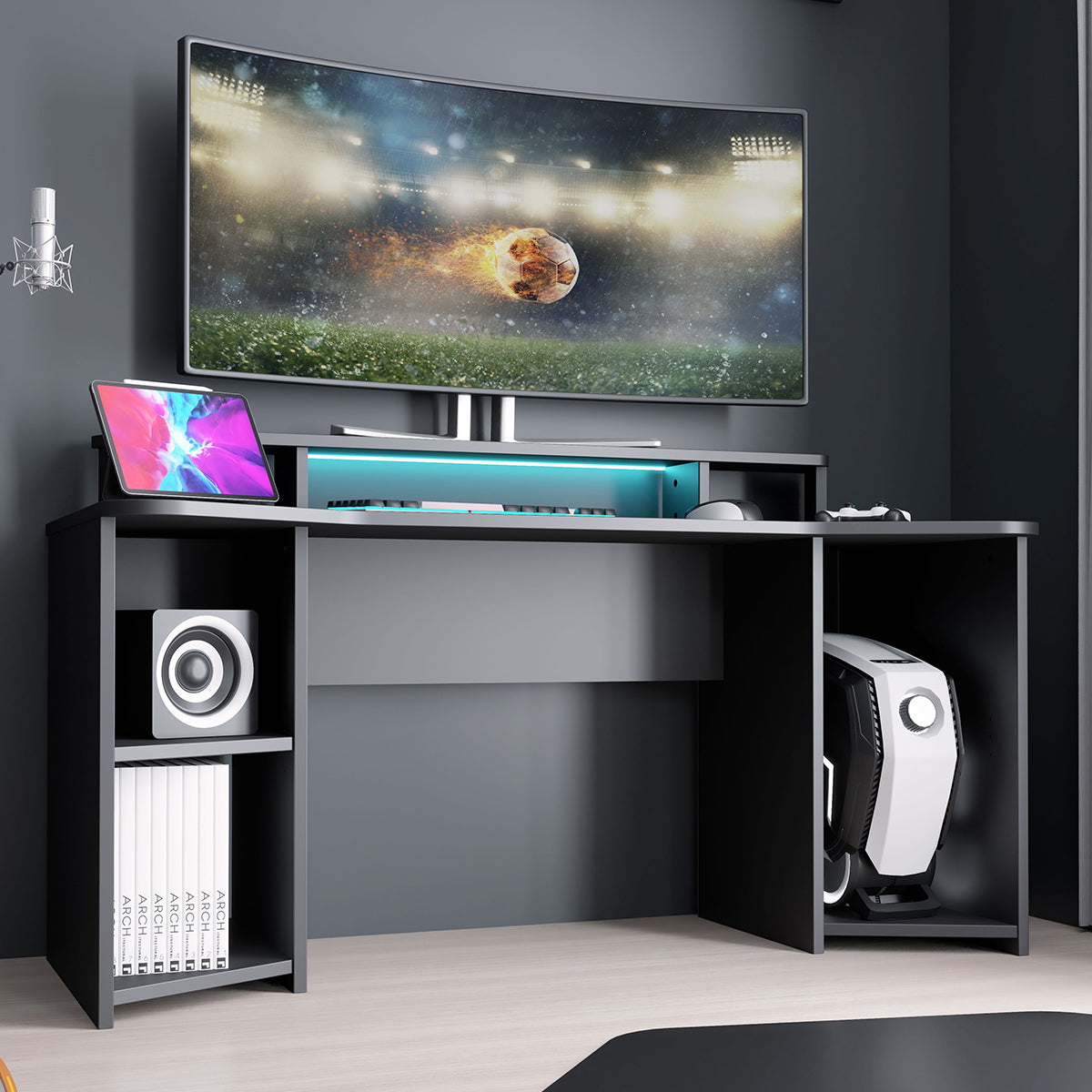 Wooden Gaming Desk With Shelves And LED Lights - Tezaur