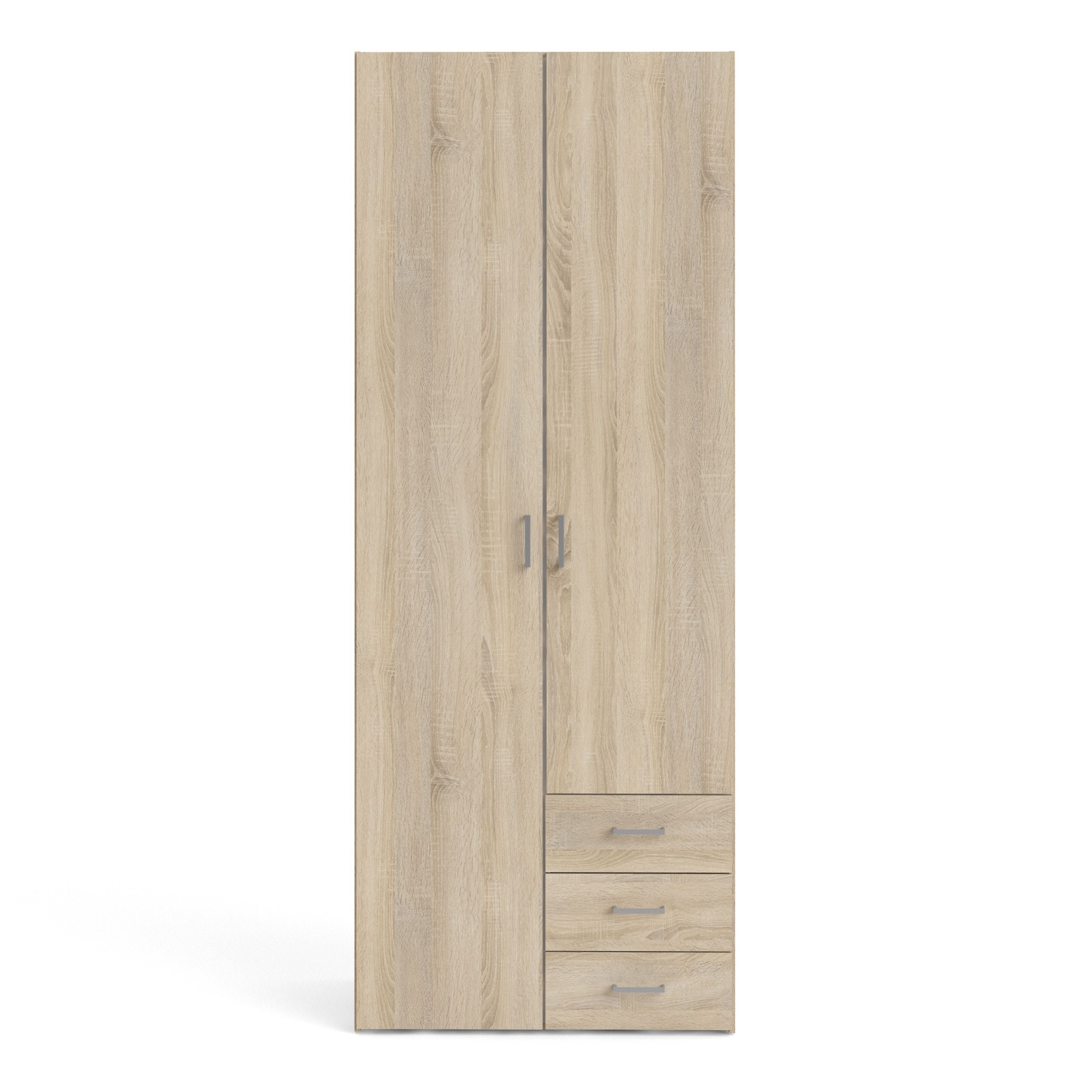 Wooden Wardrobe 200cm High With 2 Doors And 3 Drawers - Space