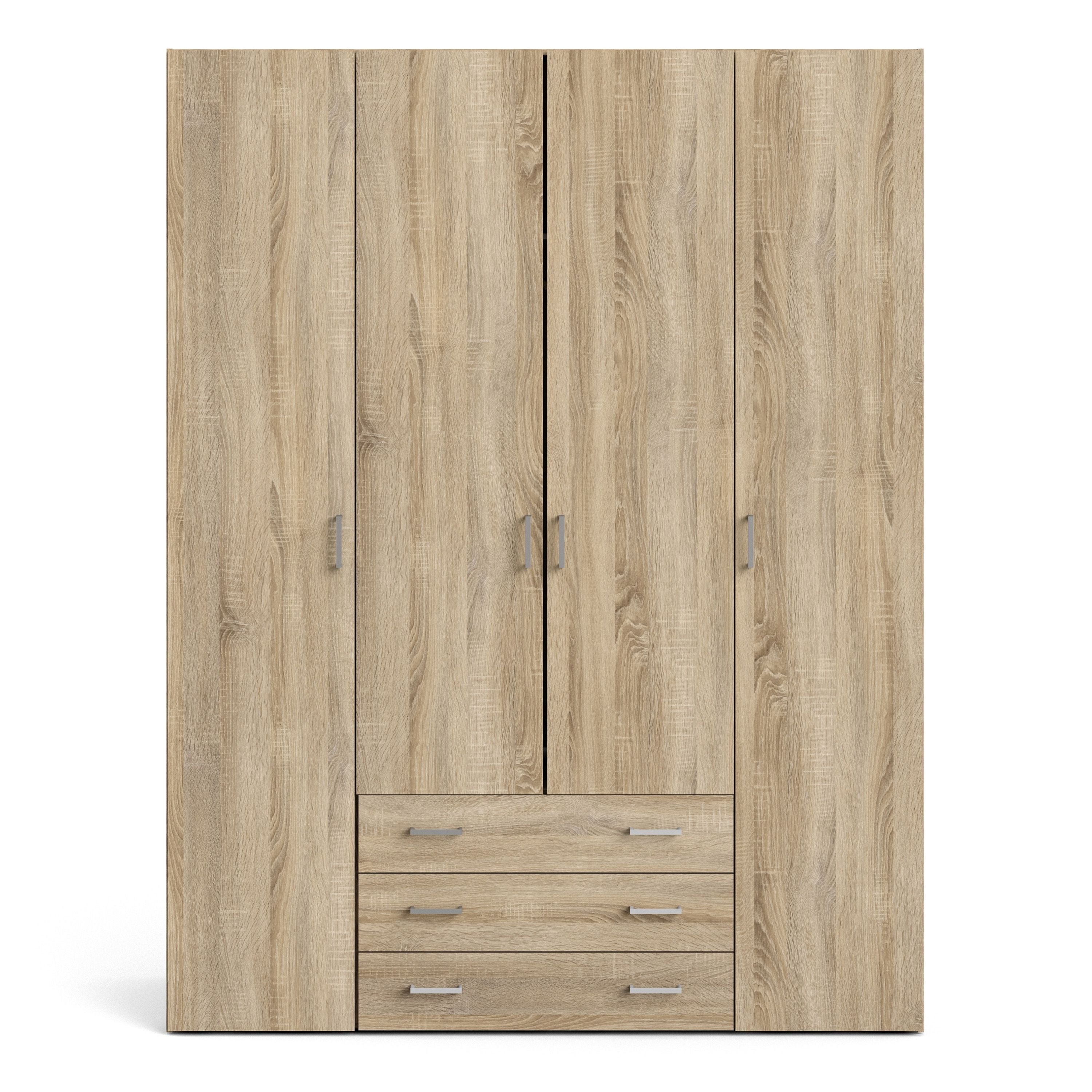 Wooden Wardrobe 200cm High With 4 Doors And 3 Drawers - Space