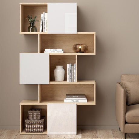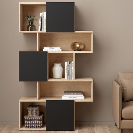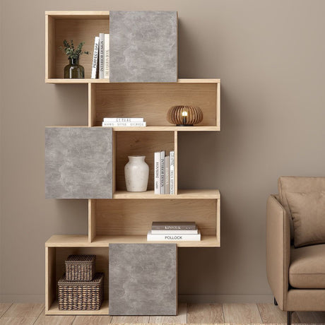 Wooden Bookcase With 3 Doors Asymmetrical in Jackson Hickory Oak - Maze
